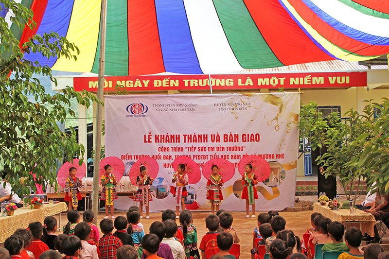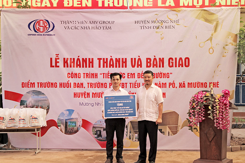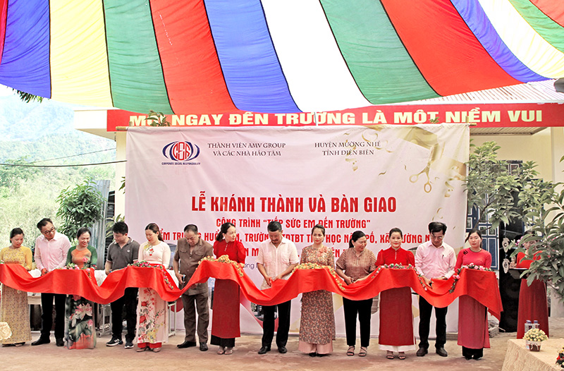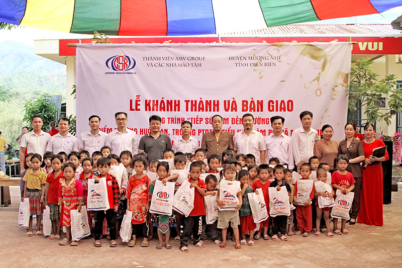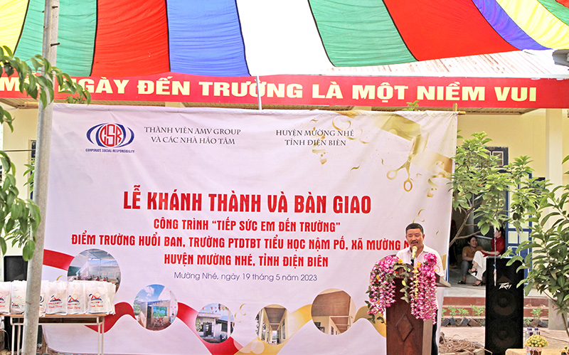 Ngày 19/5/2023, trên mảnh đất biên cương - nơi cực Tây của Tổ quốc, Đoàn thiện nguyện thay mặt cho các thành viên Tập đoàn Y tế AMV và các nhà hảo tâm đã phối hợp với Huyện Mường Nhé tổ chức Lễ Khánh thành và bàn giao Công trình “Tiếp sức em tới trường” tại điểm trưởng Huổi Ban, PTDTBT Tiểu học Nậm Pố, xã Mường Nhé, huyện Mường Nhé, tỉnh Điện Biên – Đây là công trình thứ 3 trên tổng số 24 công trình CSR (Corporate Social Responsibility) mà các thành viên Tập đoàn Y tế AMV và các nhà hảo tâm sẽ thực hiện trong thời gian tới tại 24 tỉnh có đường biên giới tiếp giáp với các nước Trung Quốc, Lào, Campuchia.
