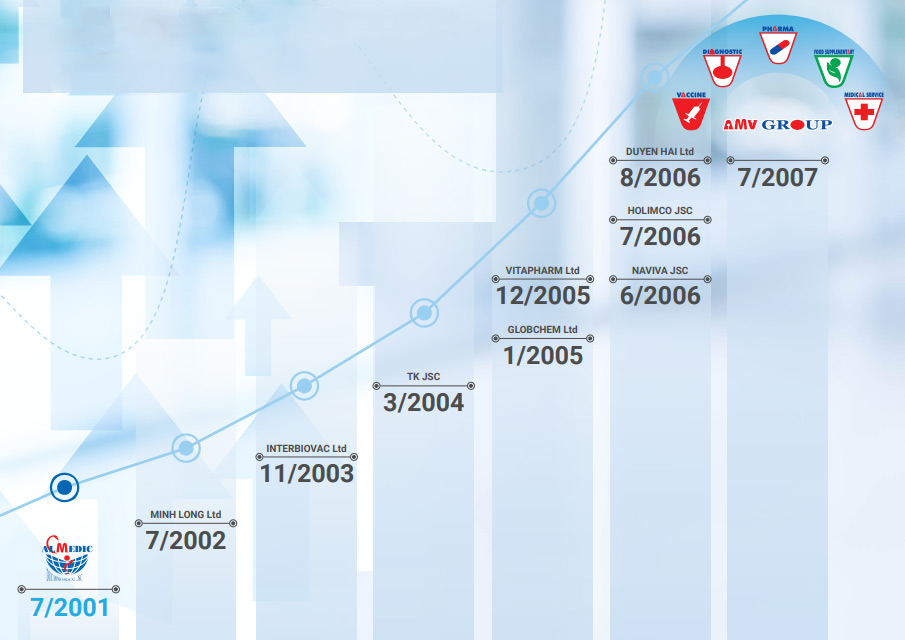 Trải qua 23 năm xây dựng và Phát triển, Tập đoàn Y tế AMV đã trở thành 1 trong những Tập đoàn hàng đầu về lĩnh vực đầu tư, liên doanh sản xuất, xuất nhập khẩu Vắc xin và sinh phẩm điều trị; Trang thiết bị y tế; Dược phẩm và Thực phẩm chức năng.