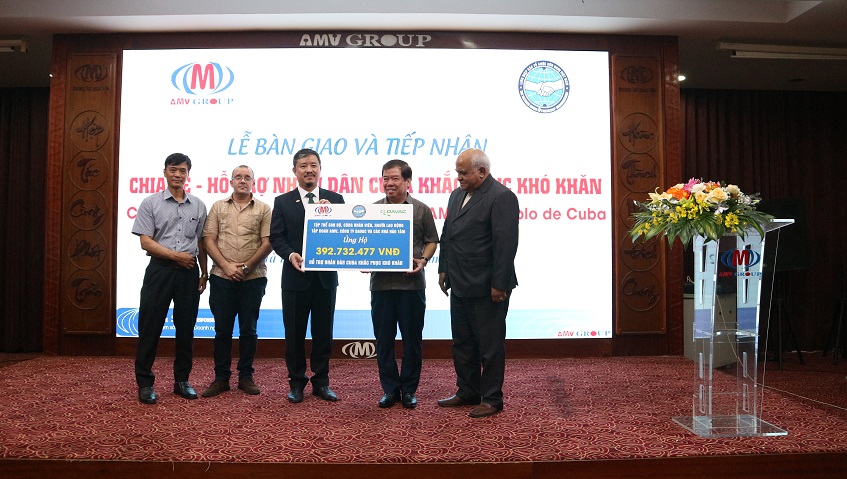 Do vậy, Hưởng ứng lời kêu gọi của Hội hữu nghị Việt Nam - CuBa, với tinh thần “Việt Nam sẽ luôn ở bên cạnh, hỗ trợ CuBa bằng khả năng của mình”, để giúp đỡ nhân dân CuBa khắc phục khó khăn, Tập đoàn Y tế AMV đã vận động cán bộ, nhân viên trong công ty và bạn bè, đối tác quyên góp tổng số tiền gần 400 triệu đồng ủng hộ nhân dân CuBa.